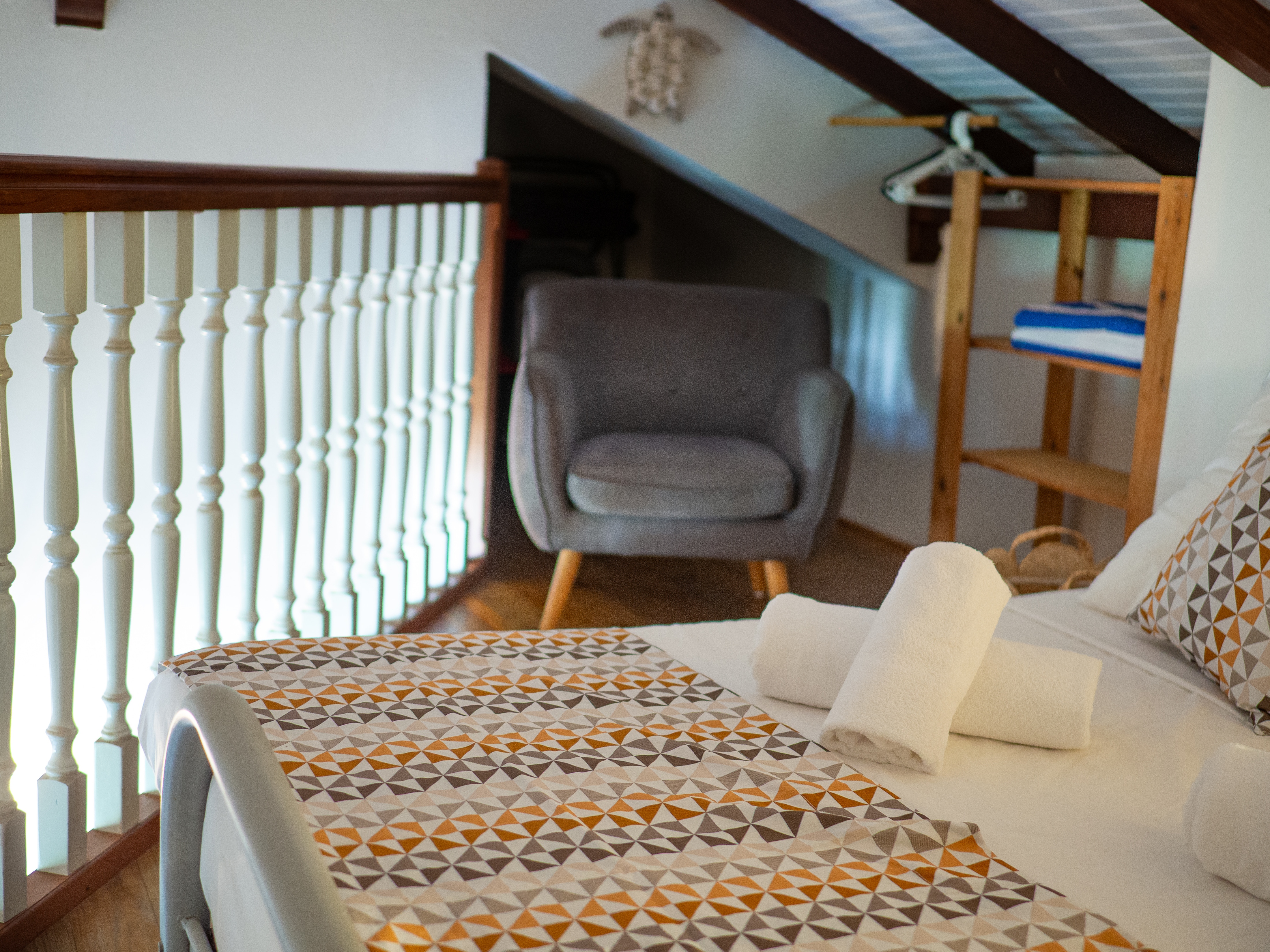 ▪ Chambre en mezzanine : lit double (140 cm), idéale pour enfants ou amis